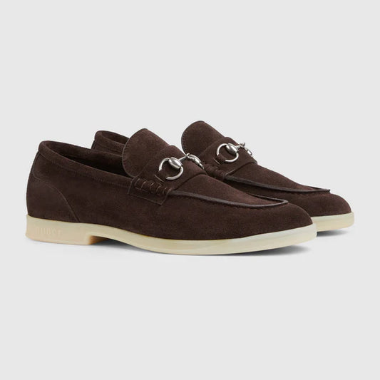Herren-Mokassin mit Spange aus dunkelbraunem Wildleder
