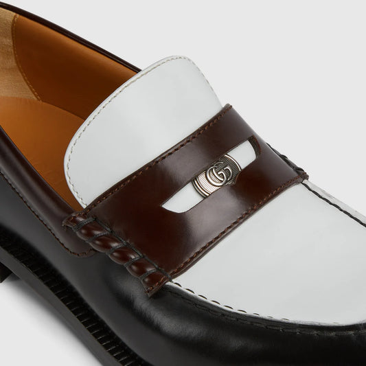 Herren-Mokassin mit abnehmbarem Detail aus schwarzem und weißem Leder