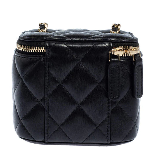 Mini-Vanity Case mit Kette aus Lammleder Schwarz