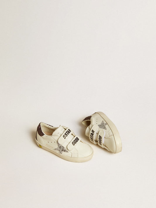 Old School Young aus platinfarbenem Glitzer mit Stern und Ferse aus Leder
