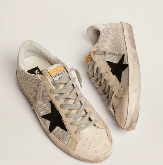 Super-Star aus bio-basiertem Material mit Stern aus Canvas und dunkelbraunem Leder an der Fersenpartie