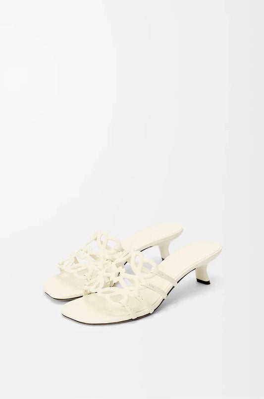 Slide Anagram Petal with heel in soft white leather