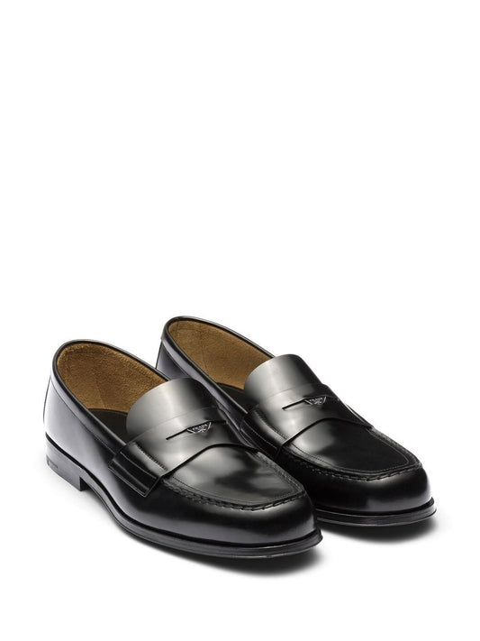 Black leather slipper with triangle logo