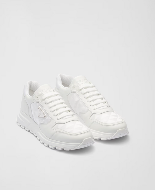 Leather and Re-Nylon sneakers – White